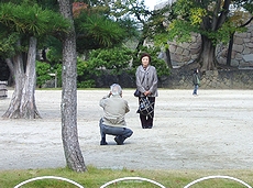 (左)福山城鐘櫓です (中)筋鉄御門です (右)ここにも熟年のご夫婦が…撮ってあげたり撮られたりで仲睦まじいお二人でした♪