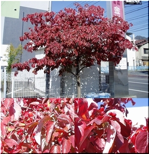 昨日の昼食時に、通りがかりに見かけました紅葉の樹木(^-^)
