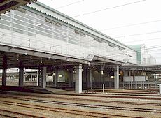 (左)JR豊橋駅構内の景観です (中)JR蒲郡駅を宿泊ホテルから撮りましたものです(^.-)☆ (右)蒲郡駅前の景観です