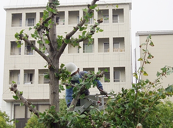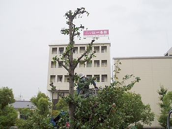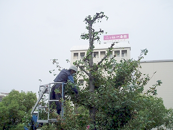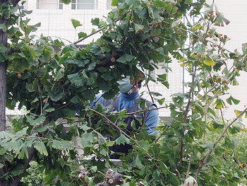 ところが、今日の午後でしたか…外出先から職場に戻って来ますと、GONsanの職場近くの銀杏の樹の伐採作業真っ最中じゃぁありませんか(^.-)☆