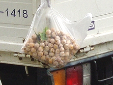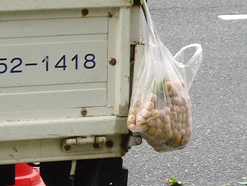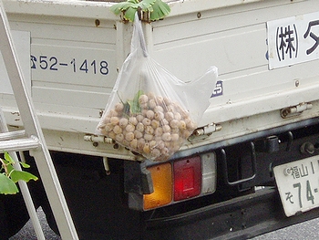 そして、銀杏拾いに取り掛かろうか…と思っていましたら、眼に入りましたのが作業トラックの後部に何気なく吊されましたビニール袋(^_^)v