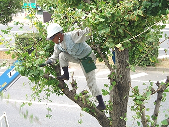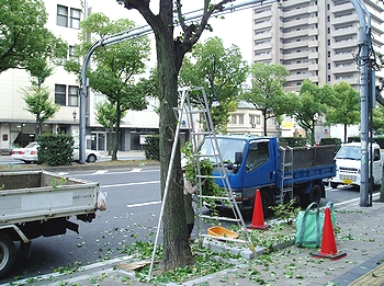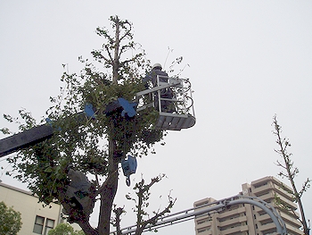 先週辺りから街路樹の銀杏の樹を見上げては、市の委託業者によります枝の伐採もソロソロかなぁ〜と、その日の訪れますのを楽しみに待っていましたGONsanです(^.-)☆