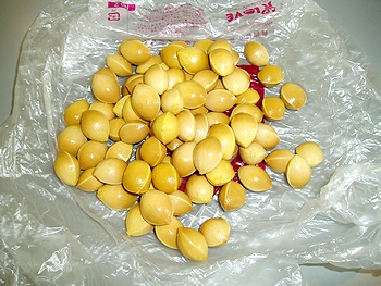 殻を割り口に入れますと、ふんわりと柔らかみを帯びました銀杏の美味しいこと(^.-)☆ もぅ最高ですよ。とにかく、タダのモノは実に美味しいですネ(^_^)v