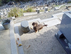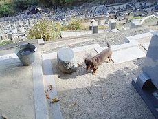 やっとこさ墓地にと到着しますと、いつもの通りアチコチの墓前を歩き廻ってはウンコ・シッコですからタマりません(^-^;