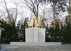秋は園内の林の紅葉が美しく、特に浅間神社の傍らのイチョウ