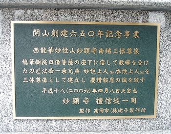 【写真】妙顕寺創建650年を記念して檀家らが建てた記念銅像