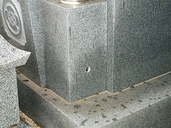 お隣りのお墓に眼を向けますと、こんな箇所に穴が…う〜ん、この穴は何を意味しますのでしょうか?