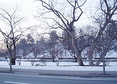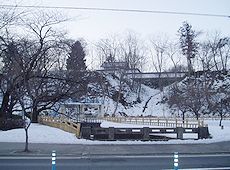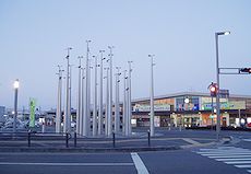 (中)花巻市指定天然記念物“千本カツラ” (右)花巻駅前です