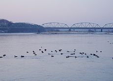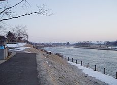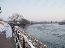 朝日橋です (中)北上川です (右)“賢治さんと歩く心像ロード”です(^.-)☆