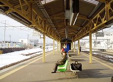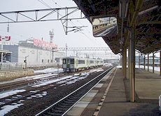 (中)(右)JR花巻駅構内で、列車待ちの時間に…