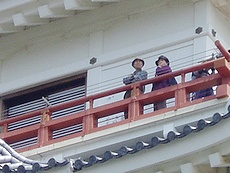 (左)天守閣からの今日の展望は、大変気持ち良い事でしょうねぇ〜
