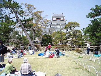 (左)こんな感じで撮っておられました (中)(右)絶好の花見日和ですから大勢の方々がお城に上がっておられます(^_^)v