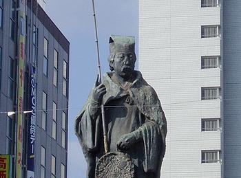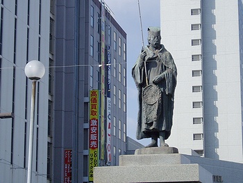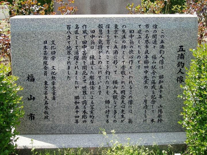 JR福山駅前に存在します福山市名誉市民・平櫛田中作『五浦釣人』です。昭和50年に、山陽新幹線開通と福山駅舎落成を記念して建立されたものです(^.-)☆