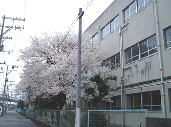 (右)福山市の都心部では毎年一番早く満開となります西小学校のサクラです(^.-)☆