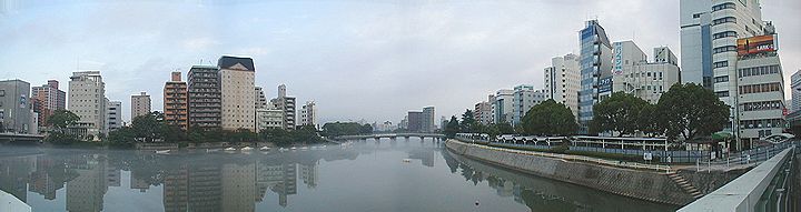 (左) (中)広島駅前の夜景です (右)広島駅前を流れる“京橋川”の朝の景観です