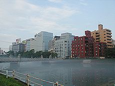 ↑↓  いずれも比治山公園へ散策時に撮りました京橋川の朝の景観です(^.-)☆