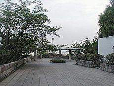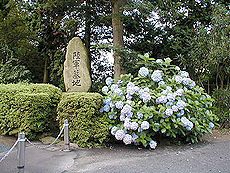 (左) ABCCの建物です (中)陸軍墓地入り口の石碑 (右)陸軍墓地です