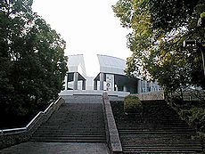 (左) 比治山公園から市街地を展望です (中)(右)現代美術館付近の光景です