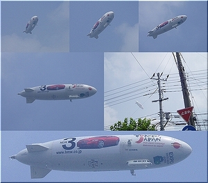 車で走行中に、ふと、何気なく空を見上げましたら飛行船が眼に入って来まして、本当にラッキー(^.-)☆