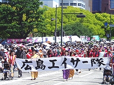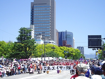 ↑↓ んっ、広島エイサー隊?!…広島にお住まいの沖縄県人会の皆様なのでしょうか…
