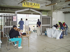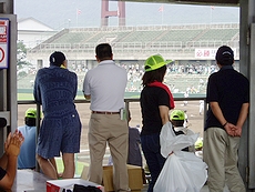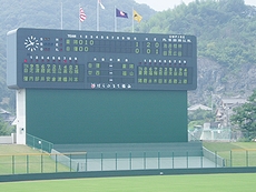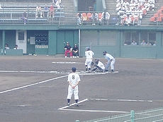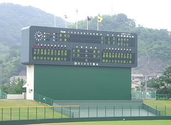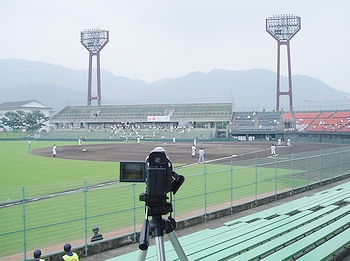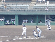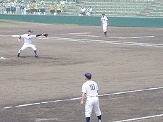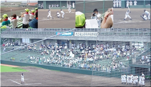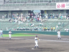 3連休の初日は、福山市民球場で高校野球の観戦でした(^.-)☆甲子園出場を目指して高校野球広島大会が7/14に開幕。出場校が100校を越えます県も何県かあるようですけど、広島県大会は94校が参加。《94校熱戦へ 高校野球広島大会開幕》--- 2005/07/14 中国新聞 ---第八十七回全国高校野球選手権広島大会は十四日、中国地方のトップを切って開幕した。94校が甲子園を目指し、広島市民球場など7球場で、二十六日まで熱戦を繰り広げる。開会式は、同球場で午後零時半から、62校が参加してあった。各校はプラカードを掲げ、昨年優勝の広島商を先頭に入場行進した。広島商の前田唯志主将が優勝旗を返還。広島県の河野二六夫出納長が知事の祝辞を代読した。廿日市西の福田雄介主将が力強く選手宣誓した。尾道市のしまなみ球場でも32校が参加して開始式があった。午後二時半から、広島市民球場は祇園北―観音、しまなみ球場は如水館―因島でプレーボール。十六日に岡山、島根、鳥取、二十一日に山口で開幕。順調に日程を消化すれば、三十日までに5県の代表校が決定する。…と、こんな記事が広島大会開幕を伝えておりました。