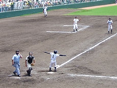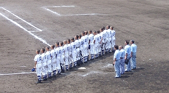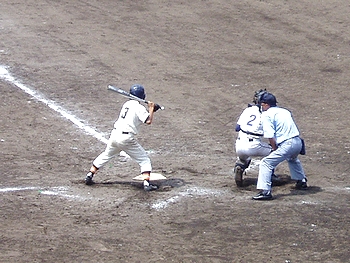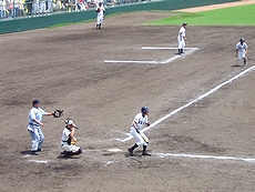 そして、A.M.11:20頃でしたか…いよいよ「城北×盈進」戦の開始です。が、1回表からいきなり城北高校が3点選手。