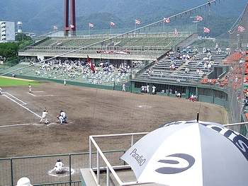 ■2005年07月18日 今日の福山市民球場…地元強豪・盈進の試合で、さすがに観客は多かったですネ(^.-)☆