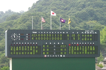 第一試合の「広工大×尾道北」戦は“6×1”で広工大の勝利。
