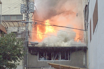 15日午後2時5分ごろ、福山市今町の本通商店街にある洋菓子店「マロンドール」(徳永誠一社長)から出火、木造2階建て店舗兼住宅延べ約250平方bを全焼し、両隣のビル計2棟の一部を焼いた。商店街には黒煙が立ち込め、爆発音が鳴り響いた。買い物客らが周囲を取り巻き、一時騒然となった。