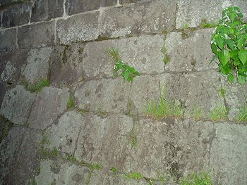 (左)(右)石垣の無数の穴は、西南戦争時の銃弾の跡です(^.-)☆