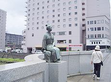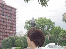 (左)(右)高見橋上で (中)大久保利通銅像です(^.-)☆