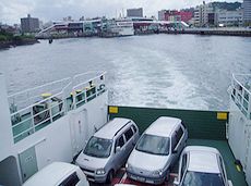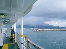 (左)(中)(右)城山公園下山後はフェリーに乗りまして桜島に向かいます