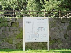 (中)反射炉跡:幕末、28代島津斉彬の時代、この地は西洋式の工業地帯(集成館)であった。