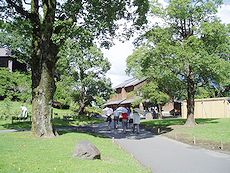 (中)正門:1895(明治28)年、29代忠義が鹿児島の大工、大重伊三次に命じて建てさせた門である。