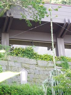 磯の裏山の楠を使用し、かえる股に島津家の家紋の丸十と五七の桐が彫りこまれている。