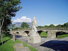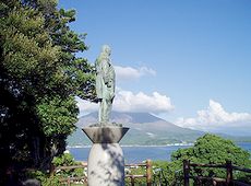 (左)岩永三五郎の像と高麗橋です(^.-)☆ (中)(右)JR鹿児島駅の景観です