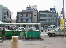 (左) (中)いずれも石岡駅の景観です (右)列車の待ち時間を利用して軽食を取りながら駅前の景観を…