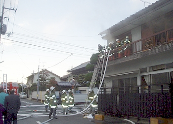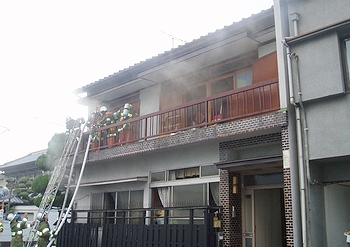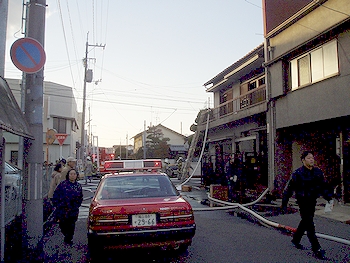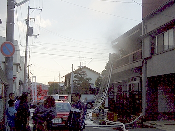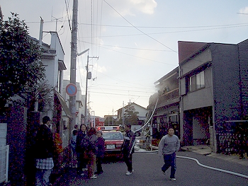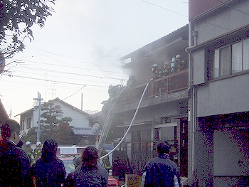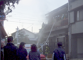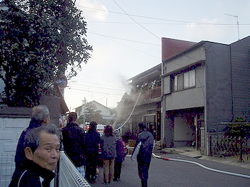 友人の話しでは、独りで留守番の年配の女性(男性かも)のお宅で火災が発生。それに気付きました隣接の方がスグに119番通報。そして、その方を外に救出。