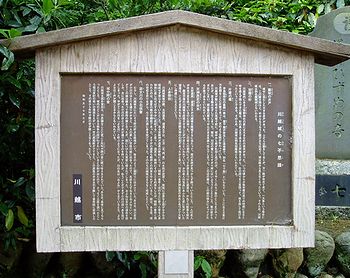 川越城の回りは沼が多く「七ッ釜」といわれ、土地が柔らかいので城を築くのに、たいへん苦労しました。昔、太田道真、道灌の父子が川越城を築くため土塁を造っていましたが、なかなか出来上がらず困っていました。そんなある夜、沼の主、龍神様が道真の夢枕に現れて「明朝、一番早く汝のもとに現れた者を人身御供として我にさし出せば、築城は成就するだろう」と告げたのでした。道真は築城のために仕方なくお告げを守ることしました。そして朝になって一番にあらわれたのは、なんと自分の娘だったのです。さすがの道真も驚き、あきらめて、娘に夢のお告げの話をしました。すると娘は「実は私も父上と同じ夢を見ました。これは龍神様のお告げです。大勢の人のためならば私はいけにえになります」といって、皆が止めるのも聞き入れず沼に身を投げて龍神様に身を捧げました。この尊い犠牲があり、見事に川越城が完成したのは、室町時代の長禄元年(1457)でした。