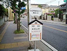 (左)ご主人様が体操中、ポメsanはおとなしくカゴの中で(^-^)/ (中)小江戸巡回バスのバス停です(^.-)☆
