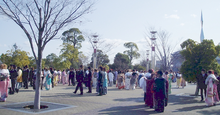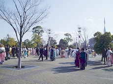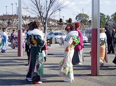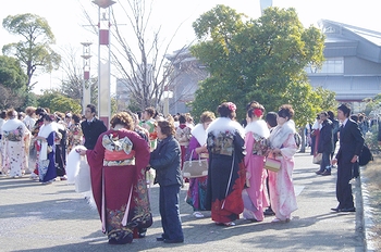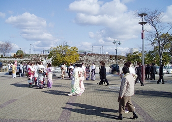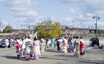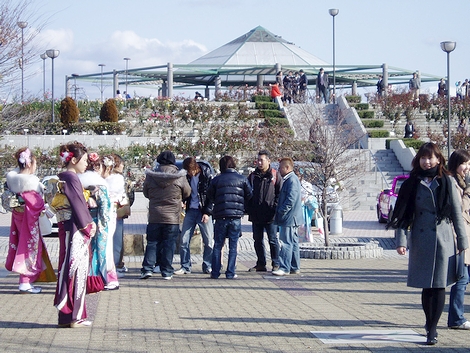 ローズアリーナまでの広場では、新成人の皆さん…晴れて大人の仲間入りで大変嬉しそうでありました(^_^)v