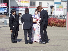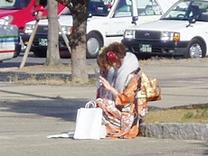 せっかく新成人の皆様の晴れ姿を画像に撮らせて頂くのだから…と、被写体は晴れ着姿で喫煙しています女性と決め、ひたすら待っておりました。