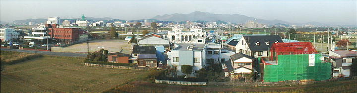 “プラザホテル直方”から展望しました、早朝のホテル周辺の景観です(^.-)☆