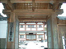 (左)雲心寺の山門です (中)次は西徳寺です (右)直方市指定有形文化財「西徳寺山門」の案内表 示板です