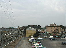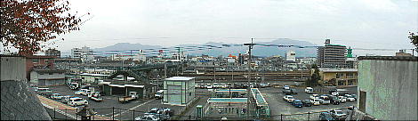 (左)西徳寺山門から直方駅構内方向を… (右)線路をまたぐ陸橋から“西徳寺”を展望です