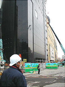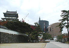 (左)(中)小倉城の景観です (右)お城のすぐ隣りに近代的な建物が建設中…都心部の宿命で、昔の 情緒が次第に消えて行きますネ(^-^;