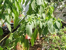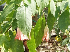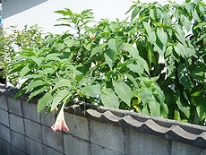 (左)こんな感じですから、何気なく歩いておりましたら気付きませんかも… (中)(右)これはエンジェルストランペット?!