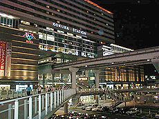 (左)夜のJR小倉駅です (中)夜のリバーウォークの景観です