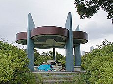 (左)原爆記念碑です (中)勝山公園内の景観です (右)勝山