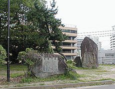(左)小倉城の敷地内に存在しました筆塚です (右)中央が市立